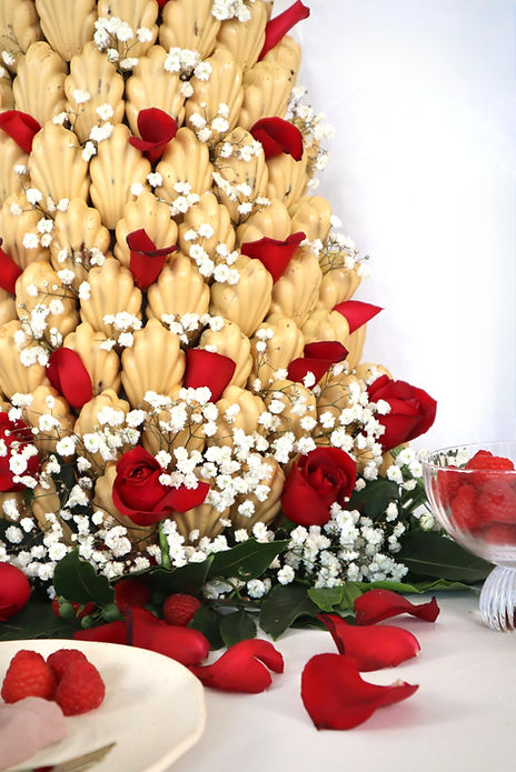 Our madeleine towers are handcrafted to make a statement piece for any event, from weddings and birthdays to corporate celebrations.